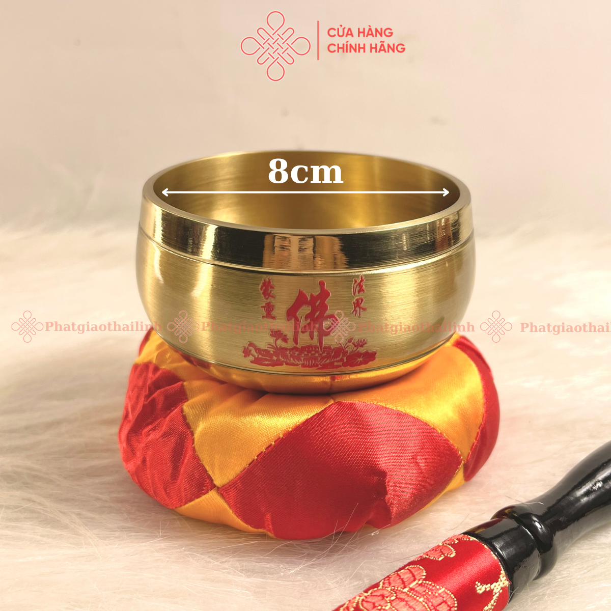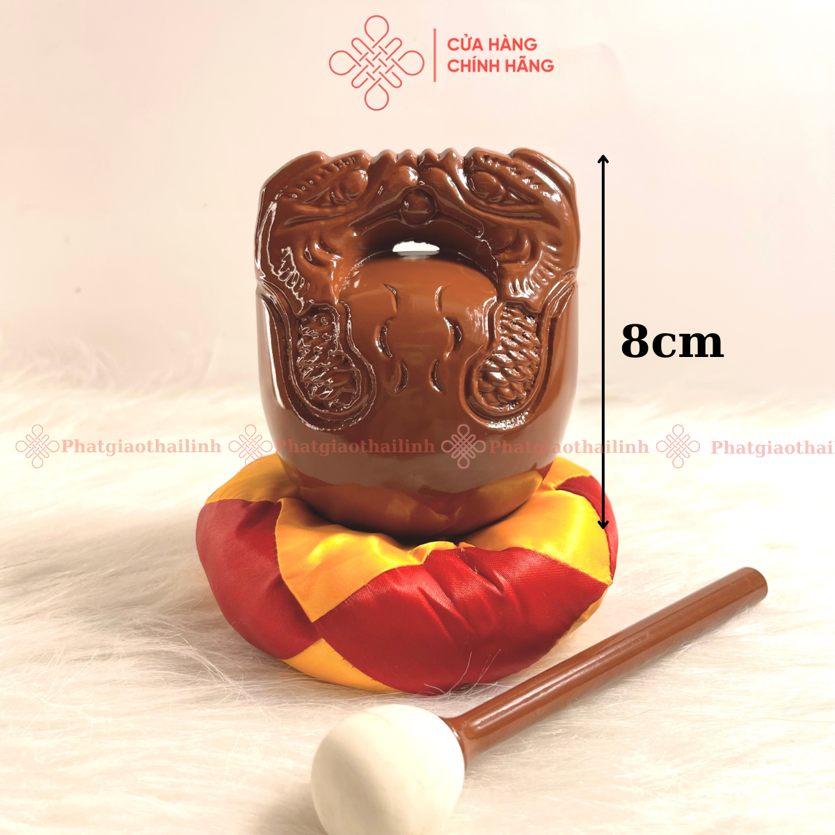 - Kích thước: đường kính miệng chuông 8cm, chiều dài mõ 8cm
