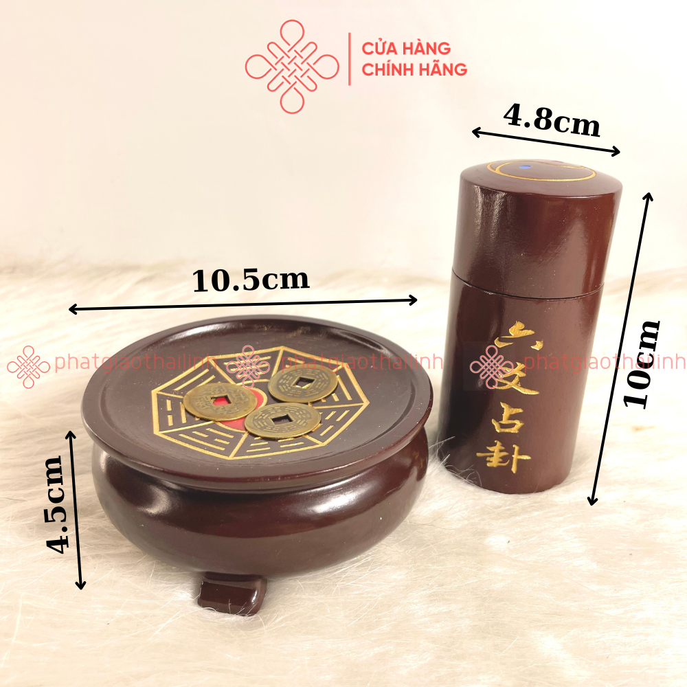 - Một bộ sản phẩm bao gồm 1 ống xóc , 1 đĩa để xu và 3 đồng xu gieo quẻ dùng để gieo quẻ luận kinh dịch