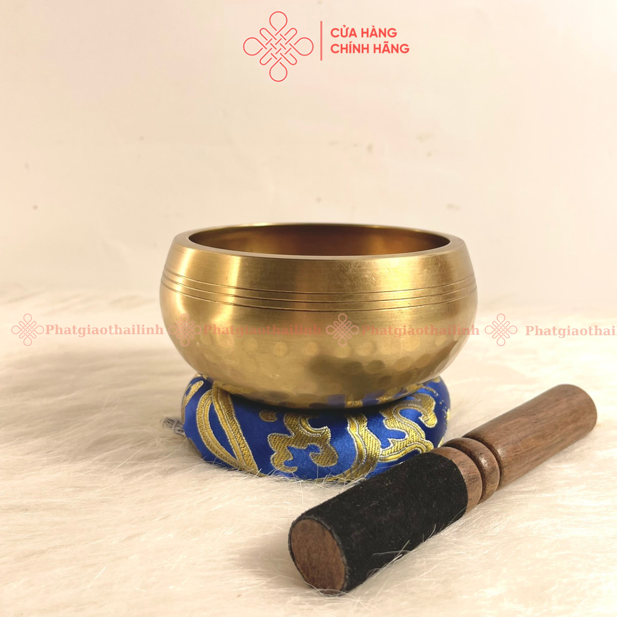 - Phụ kiện đi kèm: Tùy khách hàng lựa chọn, shop có dùi gỗ, dùi da + đế gấm (giao màu ngẫu nhiên) và túi đựng chuông