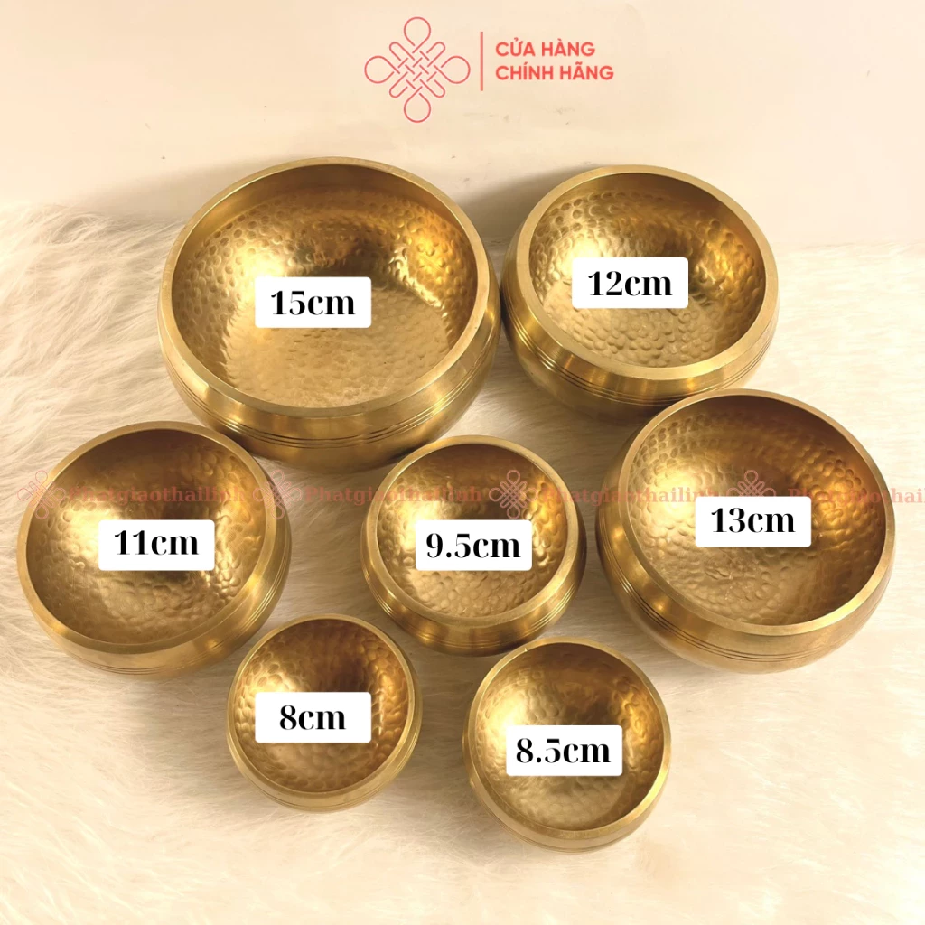 - Kích thước: chuông có 7 kích thước 8cm, 8.5cm 9.5cm, 11cm, 12cm, 13cm và 15cm