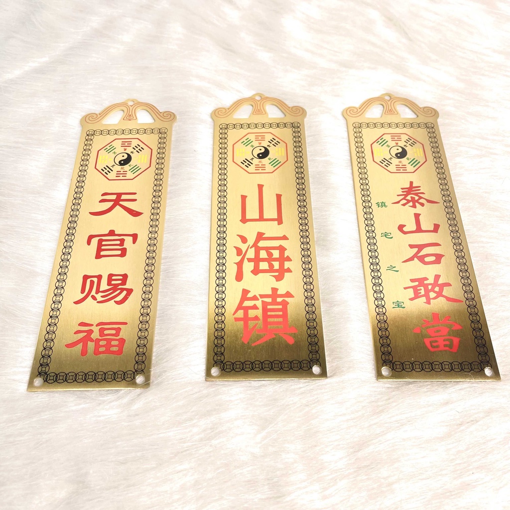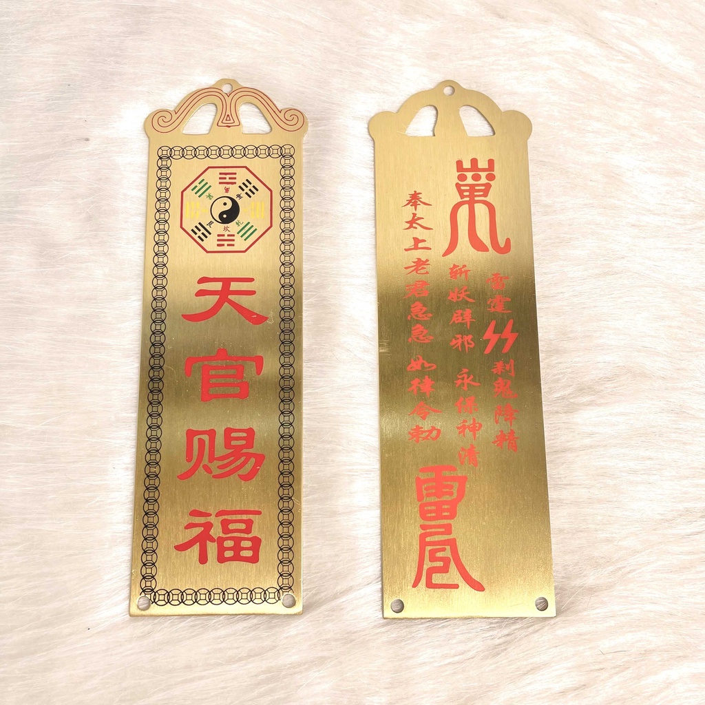 - Chất liệu: đồng thau in chữ đỏ