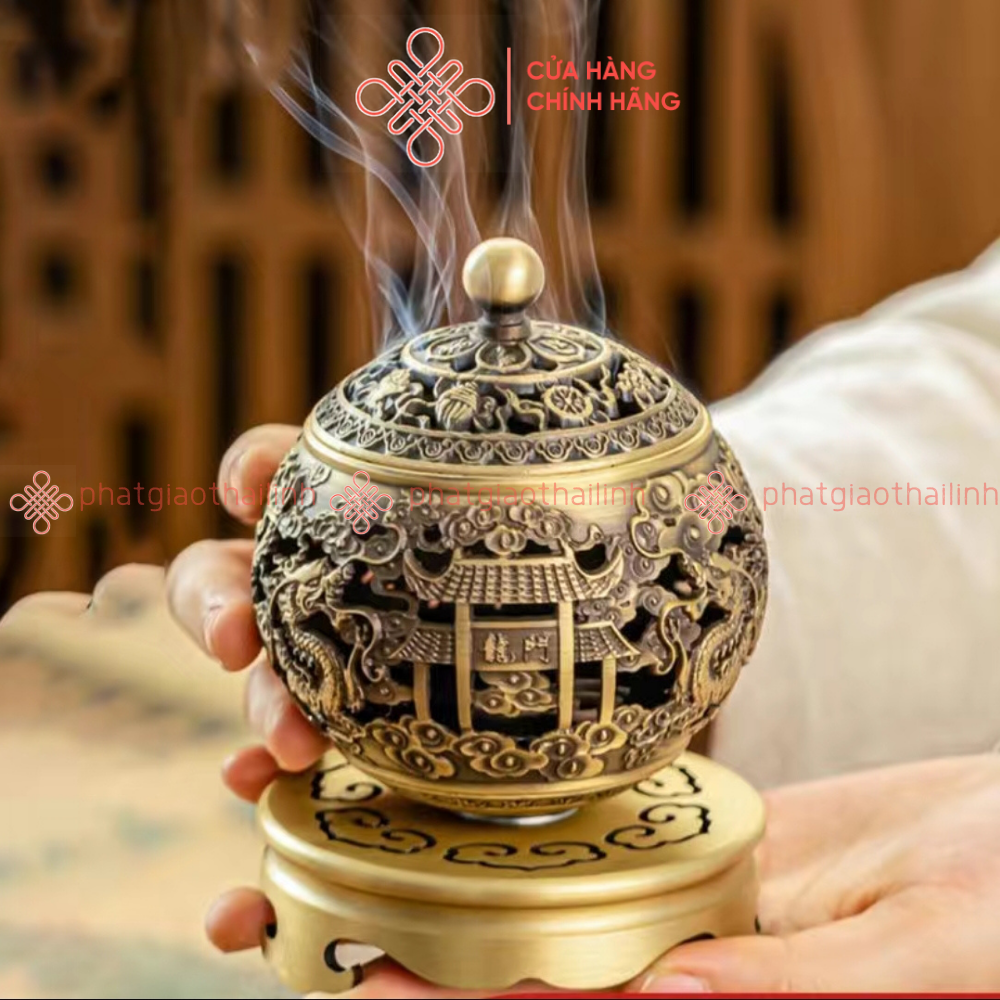 Lư Đồng Xông Trầm Họa Tiết Ngũ Long Chầu Nguyệt (Tặng Kèm 3 Nụ Trầm) - Cửa Hàng Phật Giáo Thái Linh