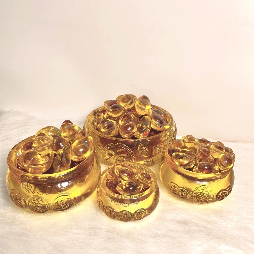 Bát tụ bảo Tụ bảo bồn kèm thoi vàng kim nguyên bảo size 8cm - Cửa Hàng Phật Giáo Thái Linh