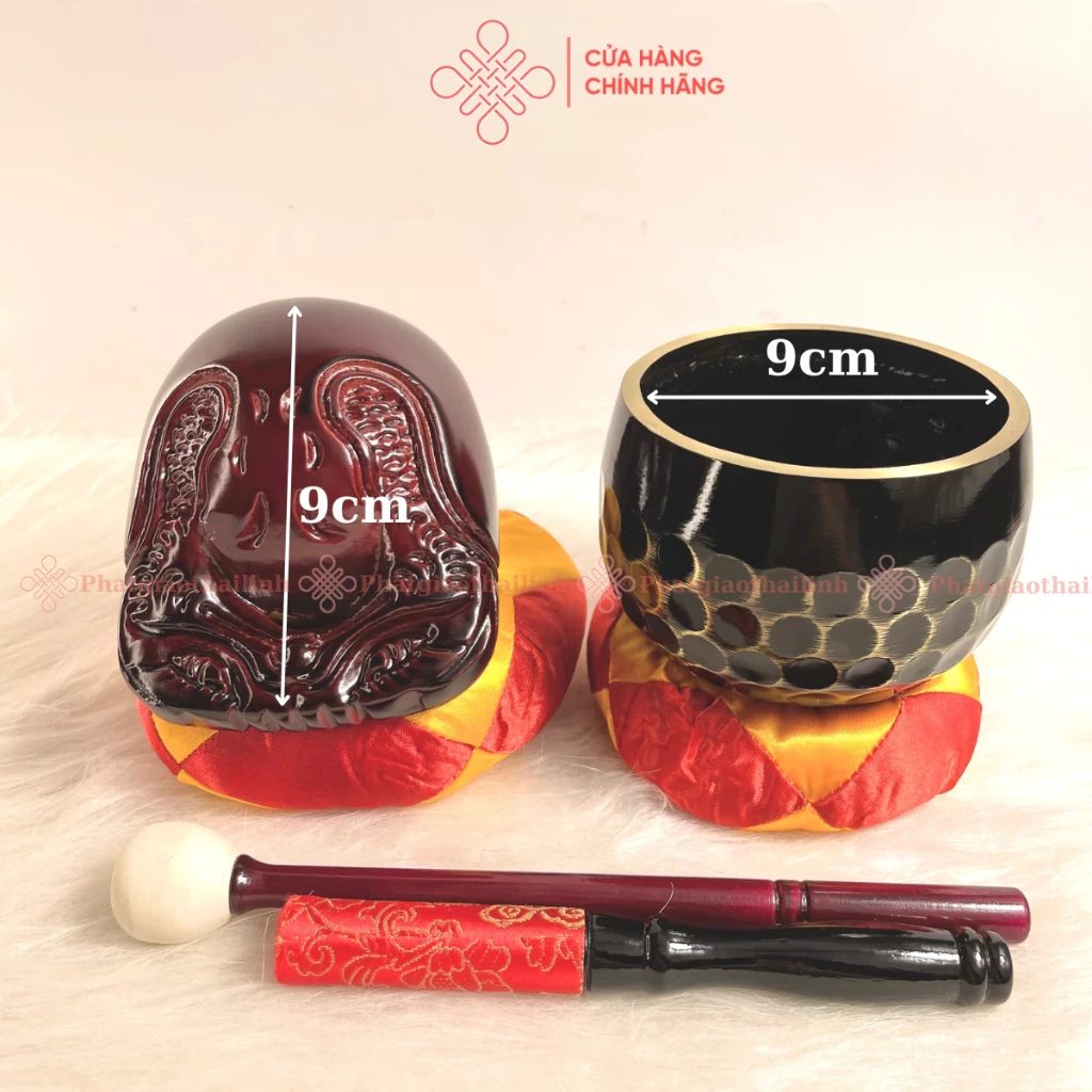 - Kích thước: đường kính chuông 9cm, chiều dài mõ 9cm