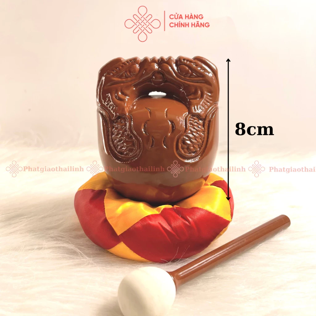 - Kích thước: đường kính miệng chuông 8cm, chiều dài mõ 8cm