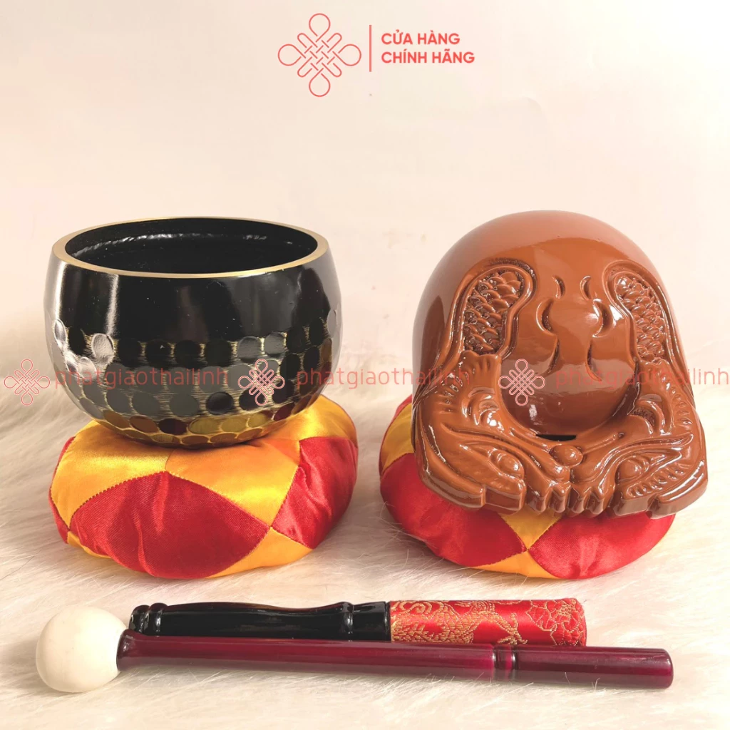 Bộ Chuông Mõ Đài Loan 4in, Chuông Đen Vân Lục Giác, Mõ Long Não - Cửa Hàng Phật Giáo Thái Linh