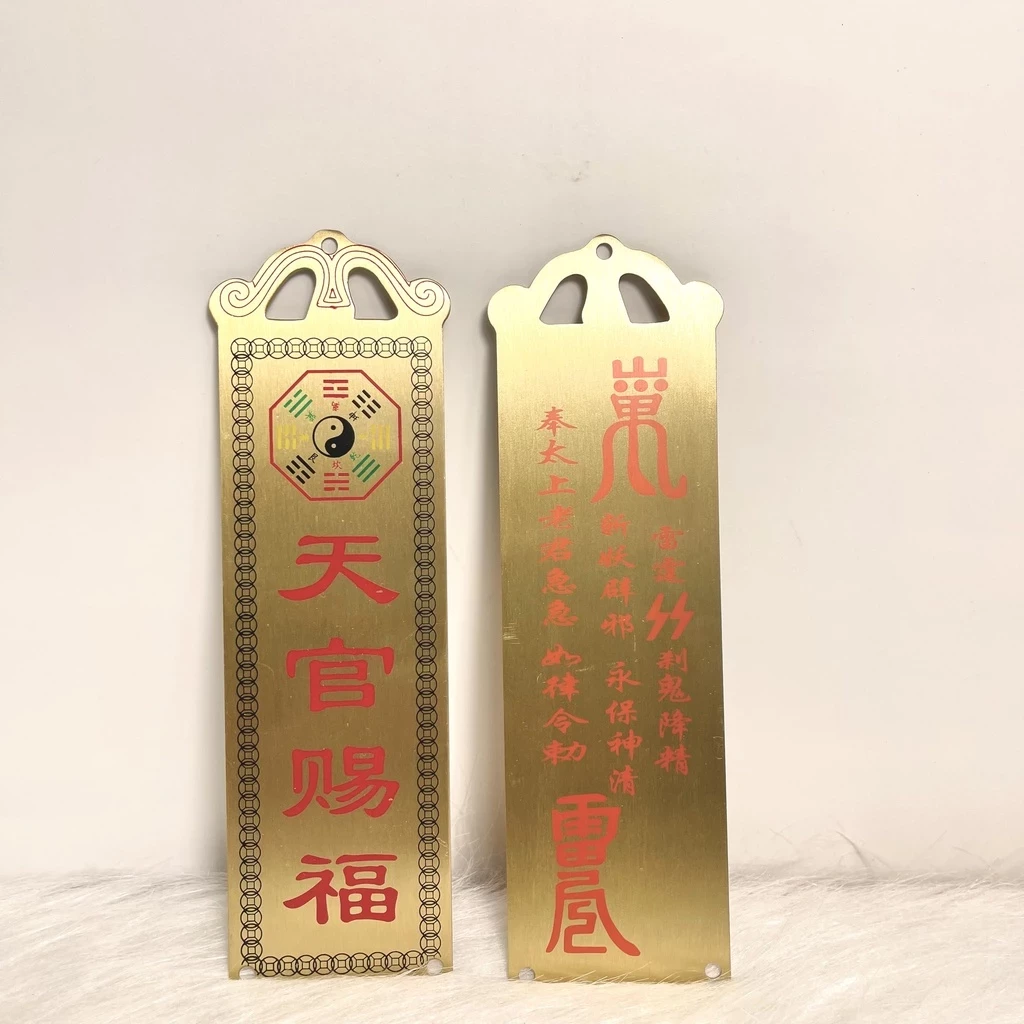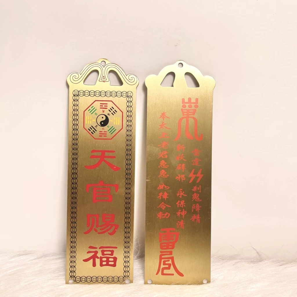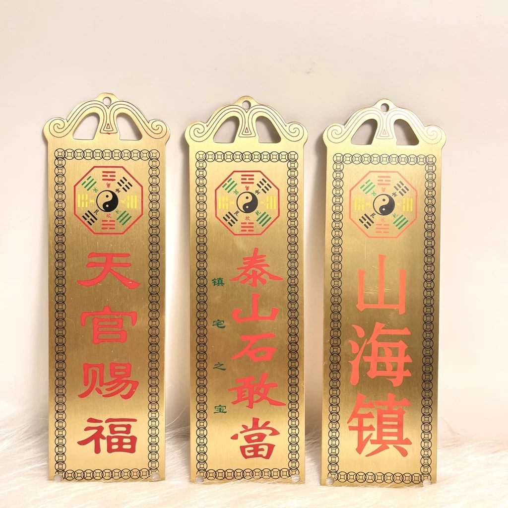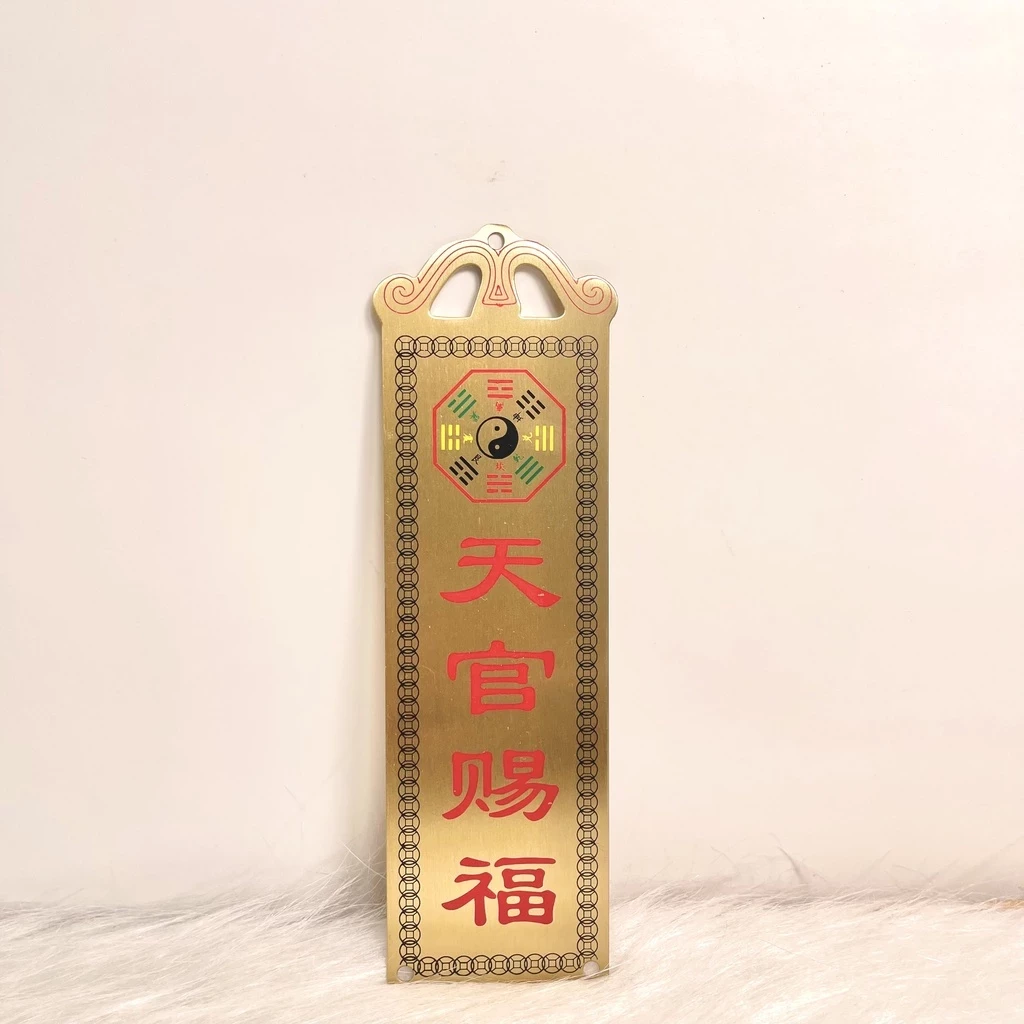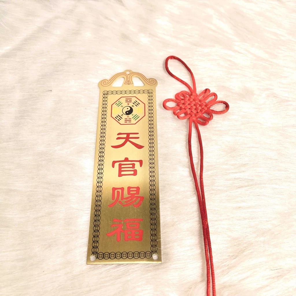 - Chất liệu: đồng thau in chữ đỏ