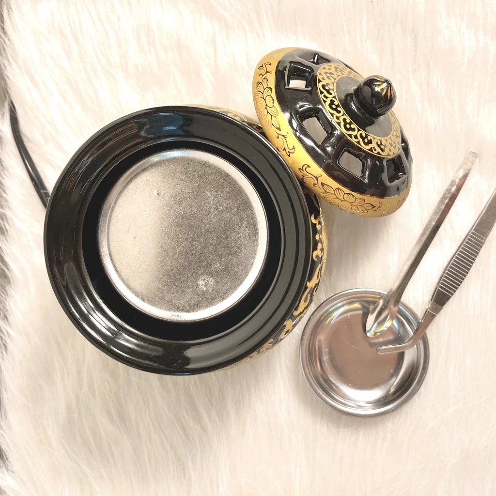 Phụ kiện đi kèm: nhíp, thìa và khay đốt trầm