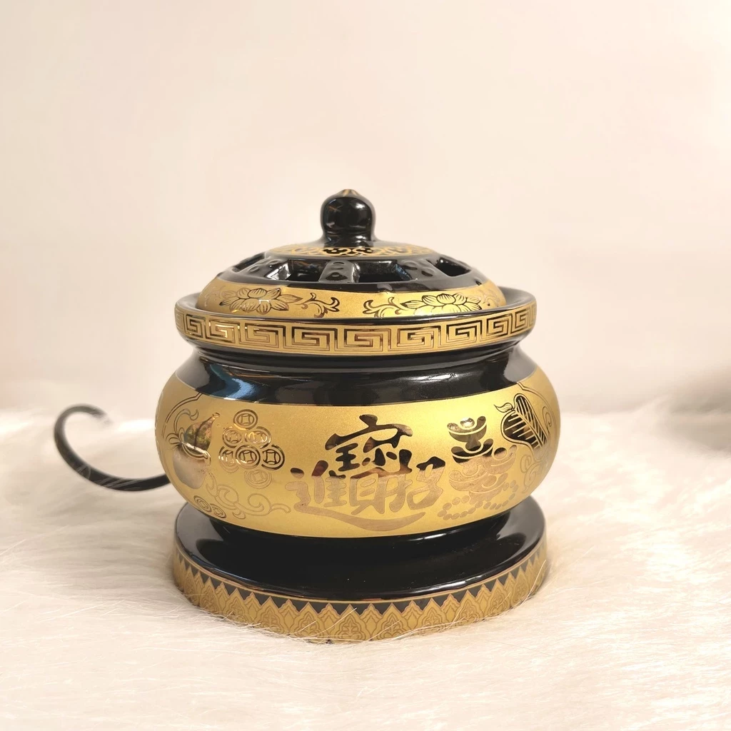 Lư Điện Lò Điện Xông Trầm Bằng Gốm Đường Kính 13Cm ( Tặng 50g Bột Trầm) - Cửa Hàng Phật Giáo Thái Linh