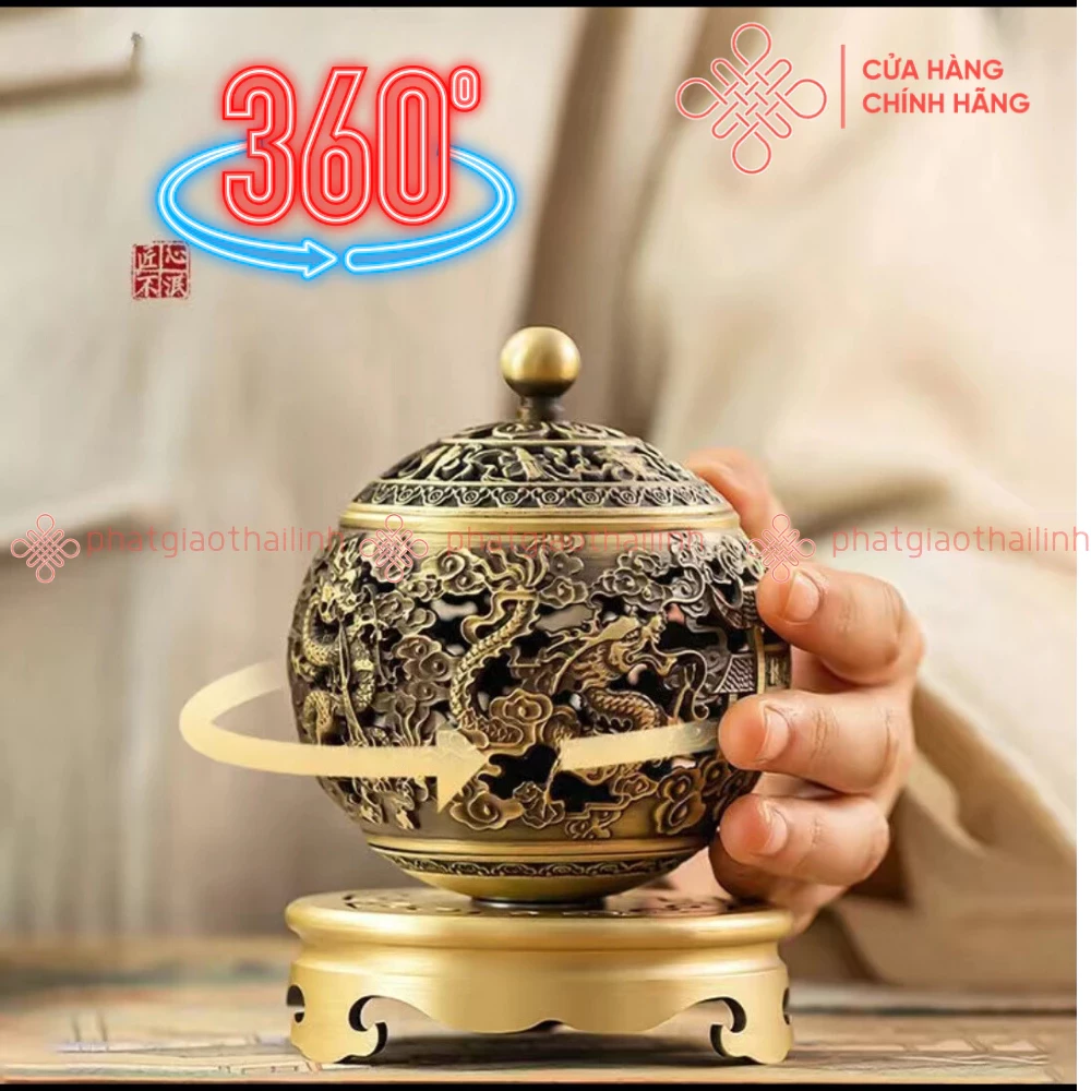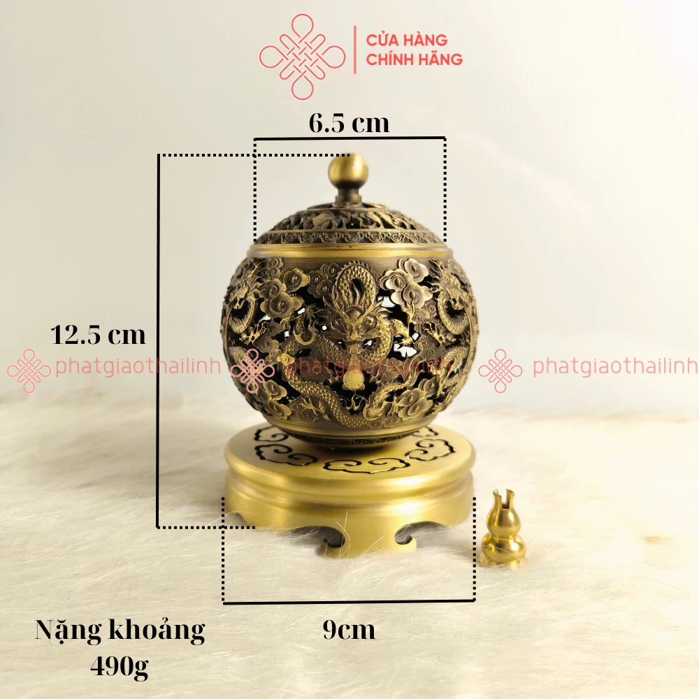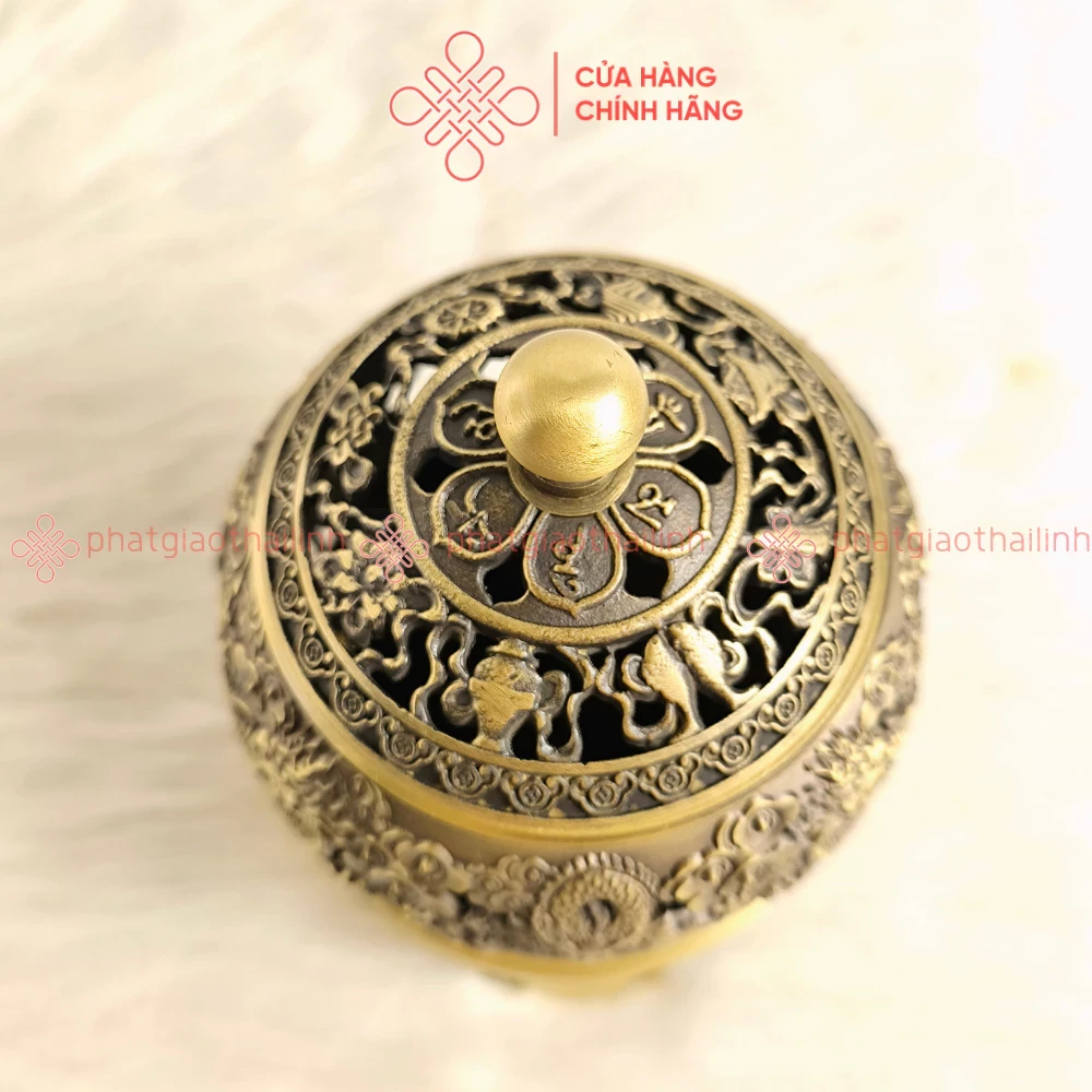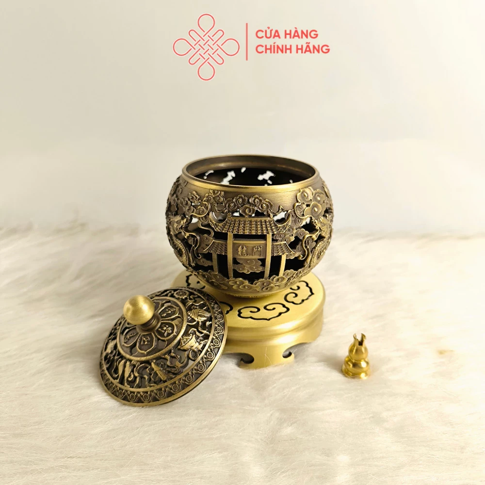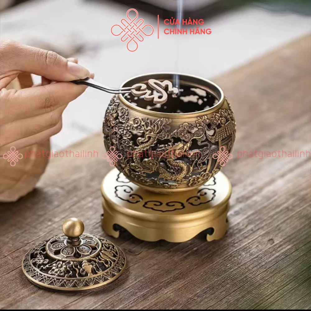 Lư Đồng Xông Trầm Họa Tiết Ngũ Long Chầu Nguyệt (Tặng Kèm 3 Nụ Trầm) - Cửa Hàng Phật Giáo Thái Linh