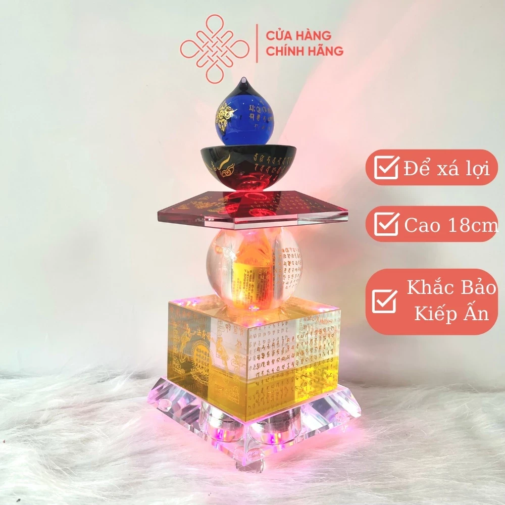 Tháp xá lợi bằng phale cao 18cm, khắc Bảo Kiếp Ấn (không kèm đế led) - Cửa Hàng Phật Giáo Thái Linh